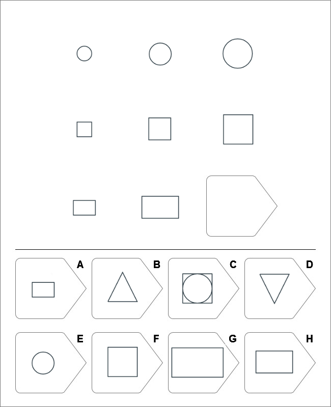 Zagadki składają się z pola 3x3, gdzie elementy ułożone są w jakimś logicznym porządku. W prawym dolnym rogu brakuje jednego elementu. Poniżej masz 8 możliwych odpowiedzi. Tylko jedna odpowiedz jest prawidłowa.